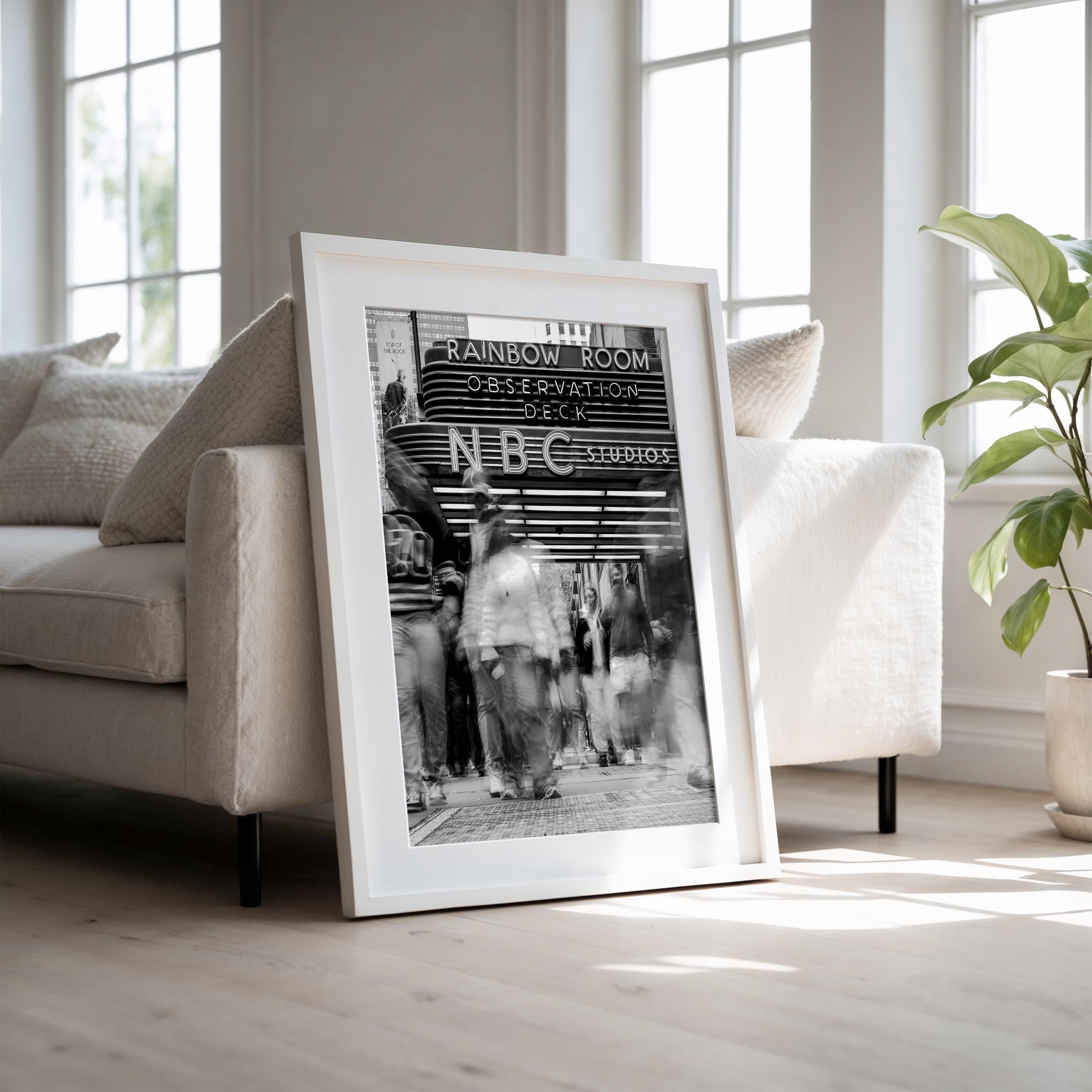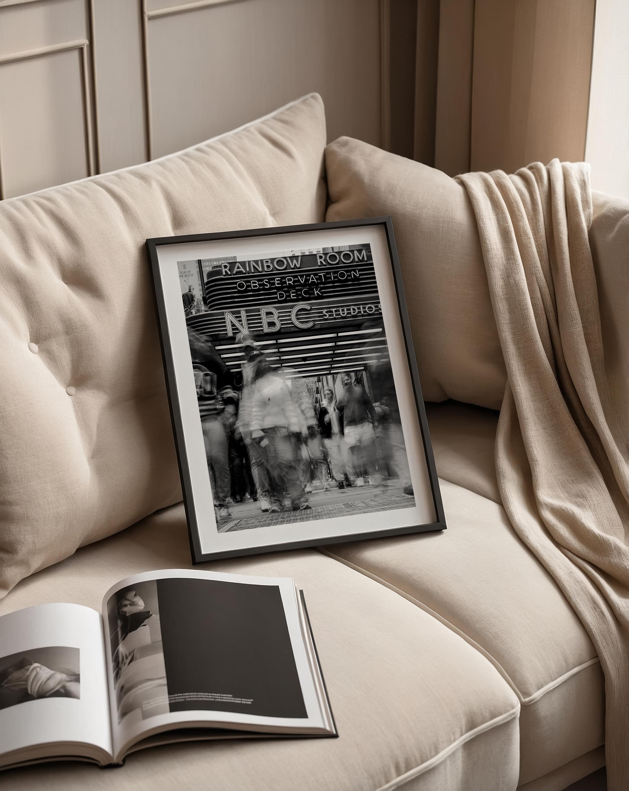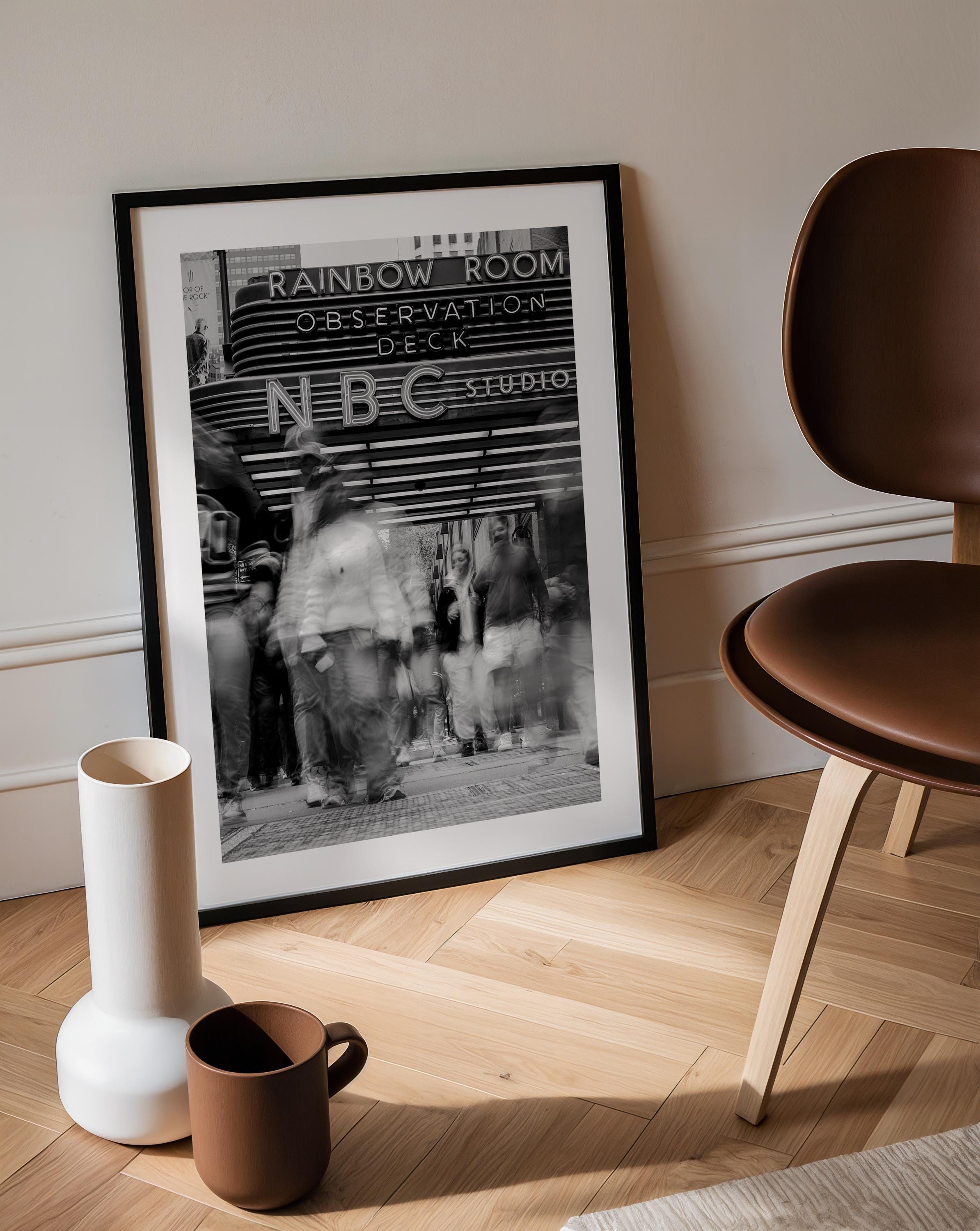 Black & White NYC Street Scene – Rockefeller Center NBC Studios – Framed Fine Art Giclée Print