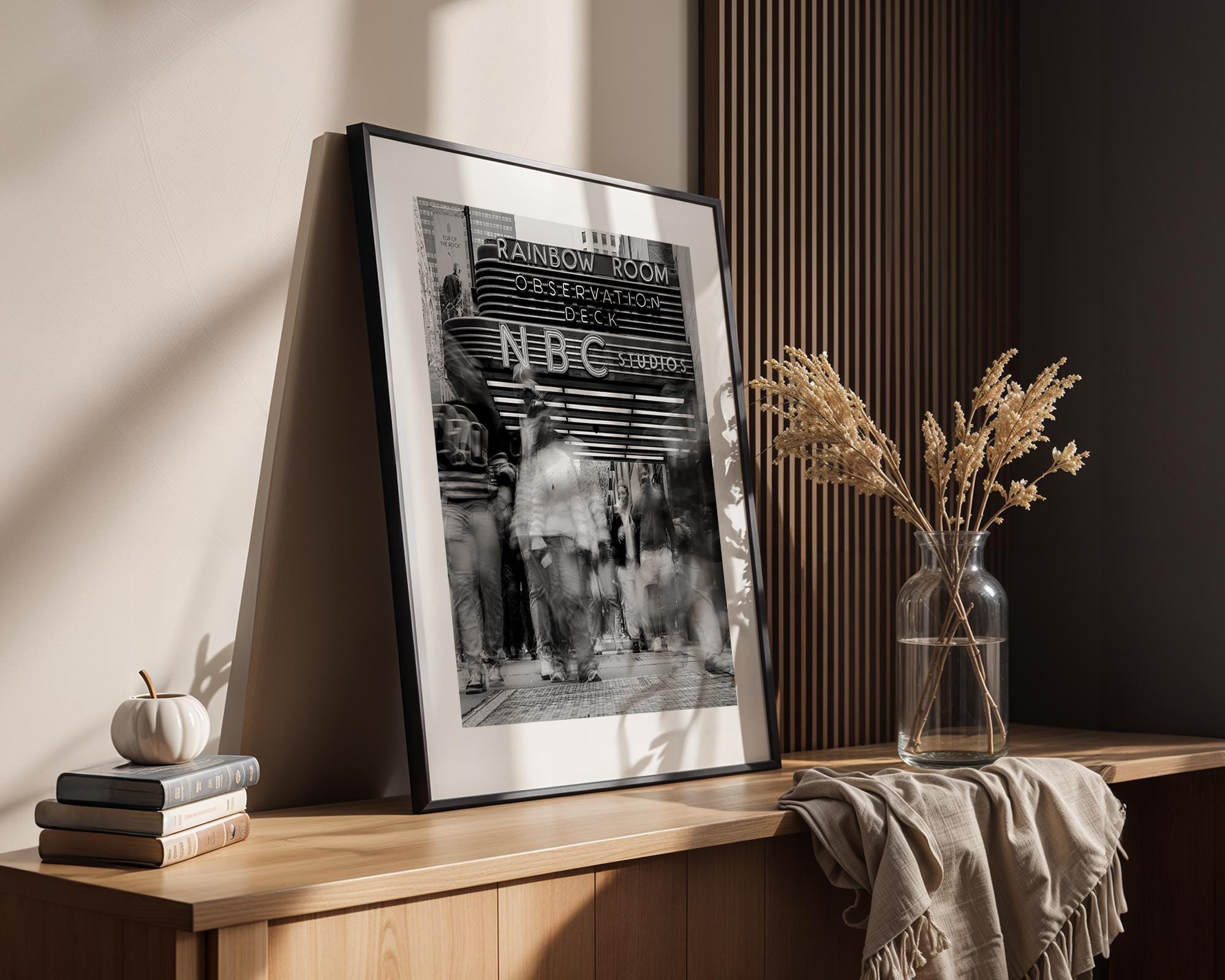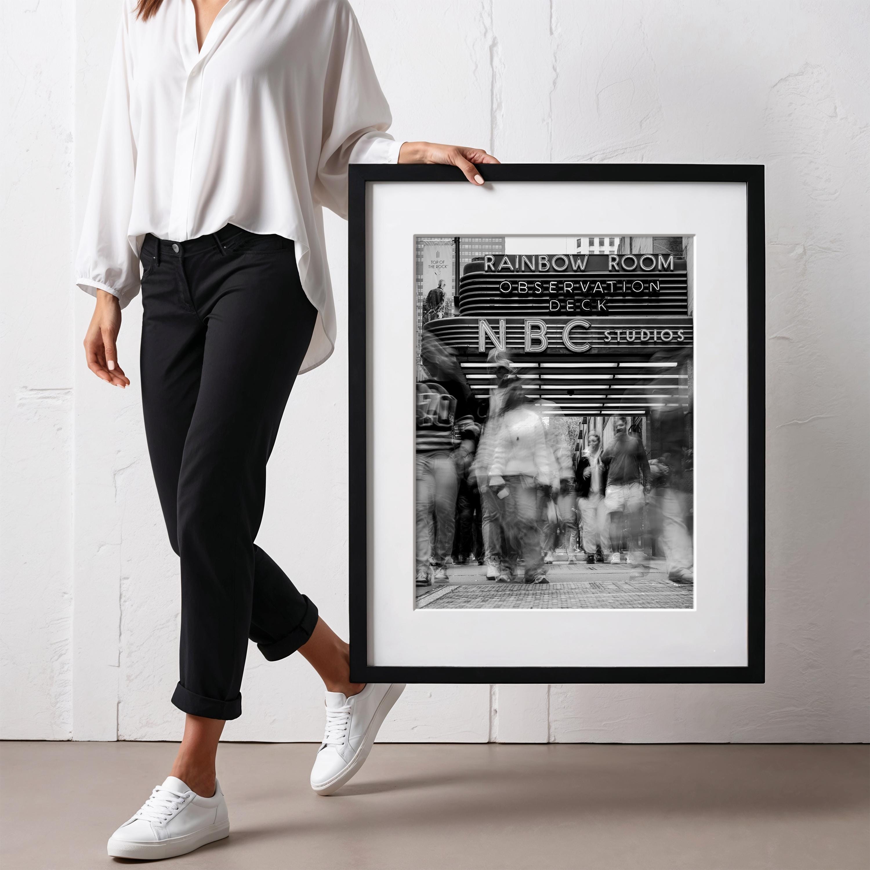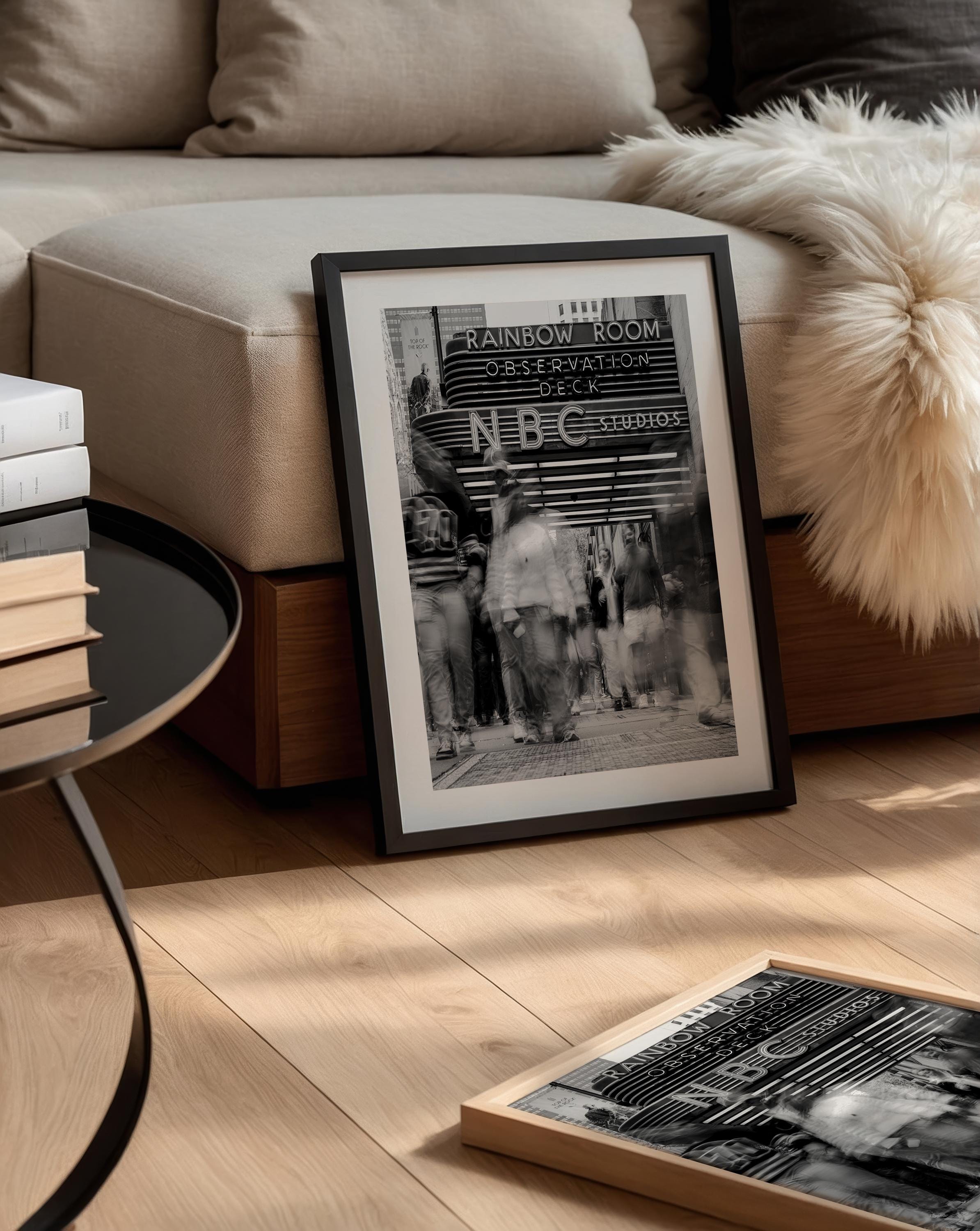 Black & White NYC Street Scene – Rockefeller Center NBC Studios – Framed Fine Art Giclée Print