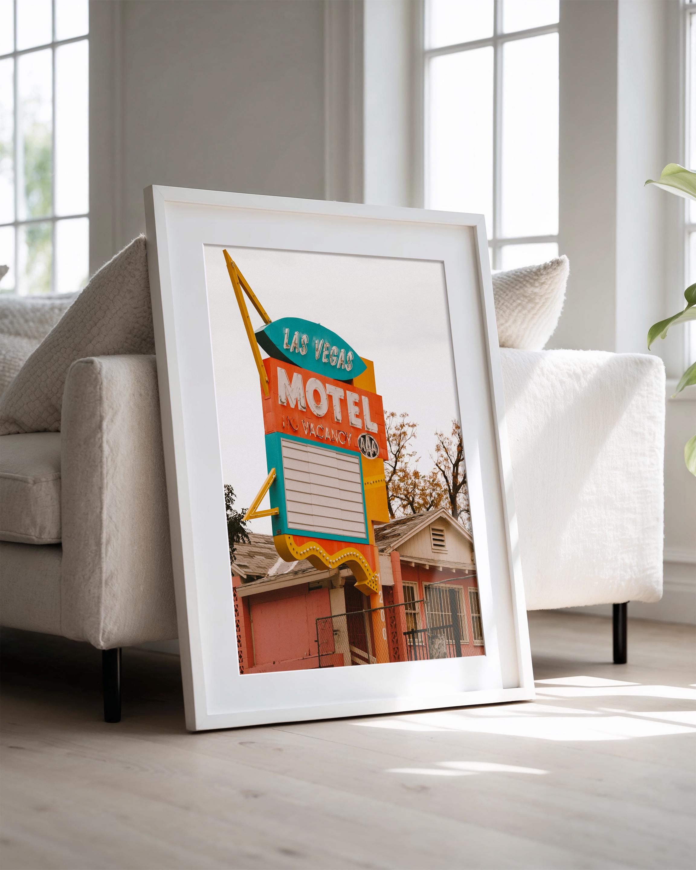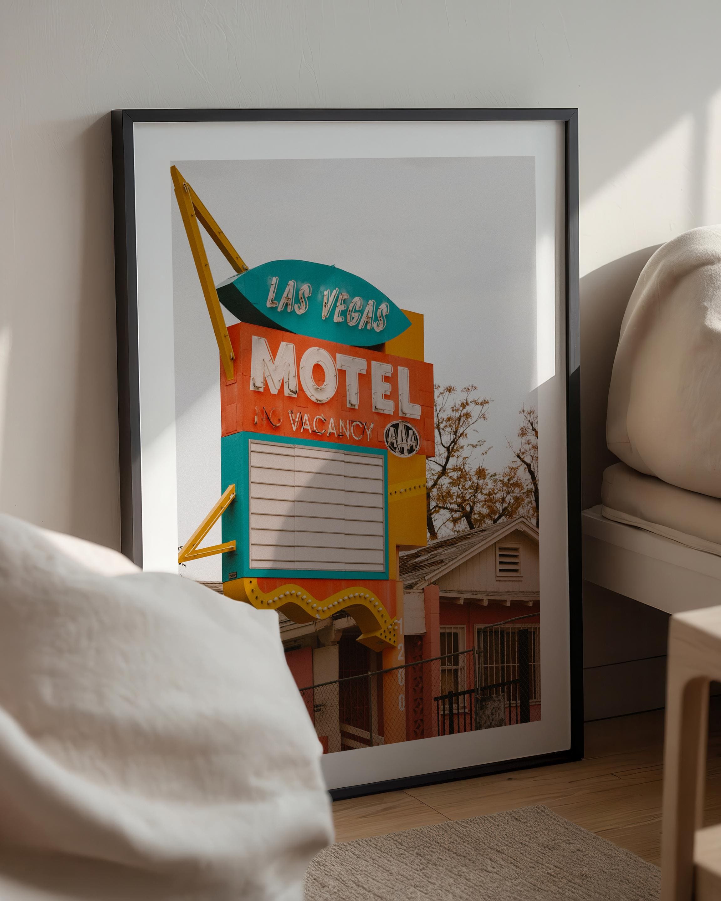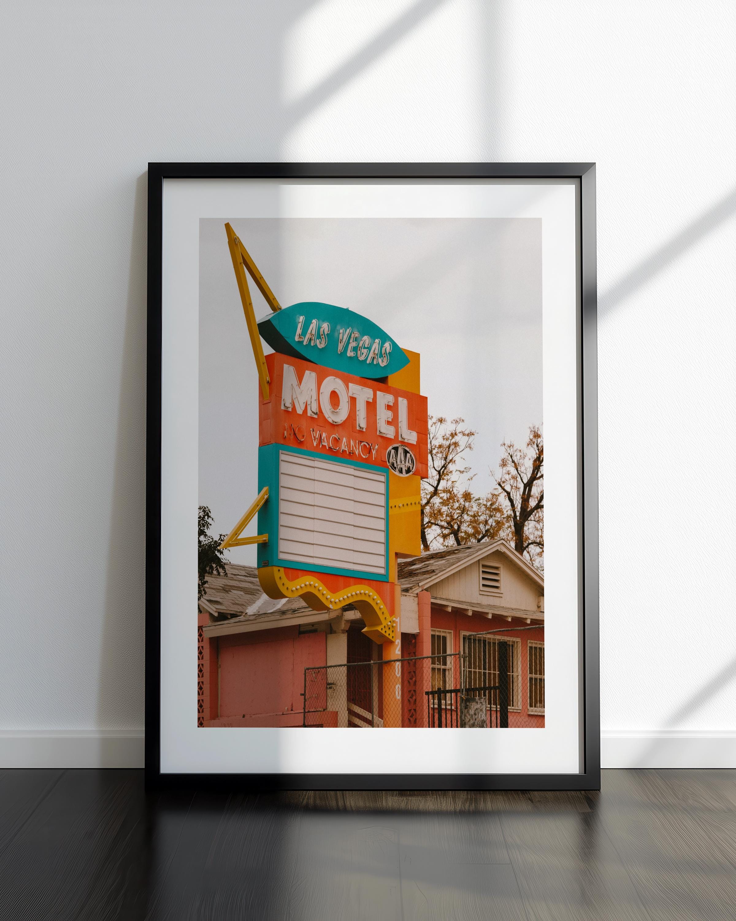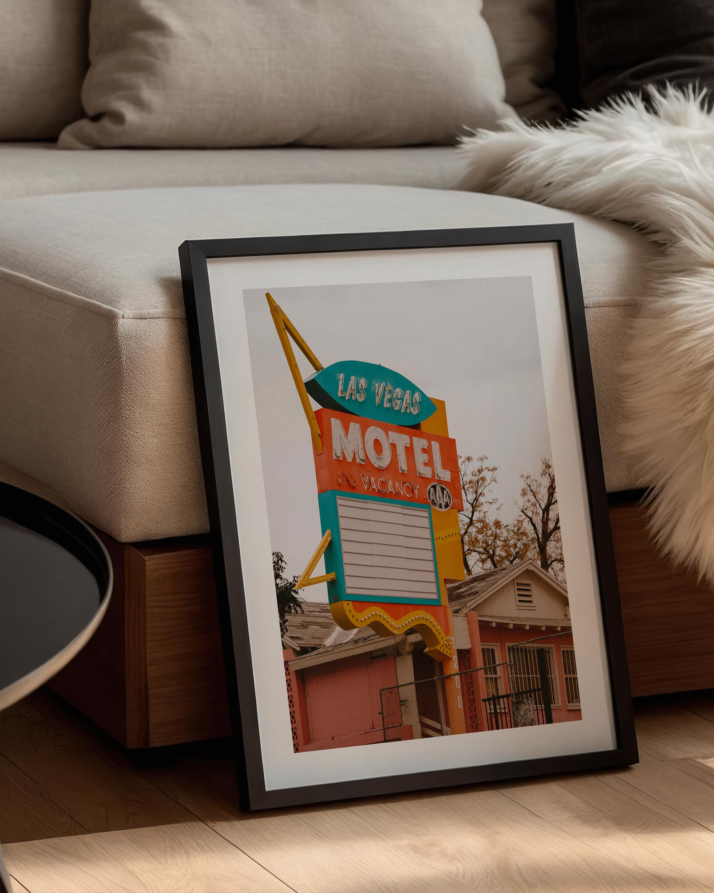 Las Vegas Motel Sign Retro Wall Art – Framed Fine Art Giclée Print