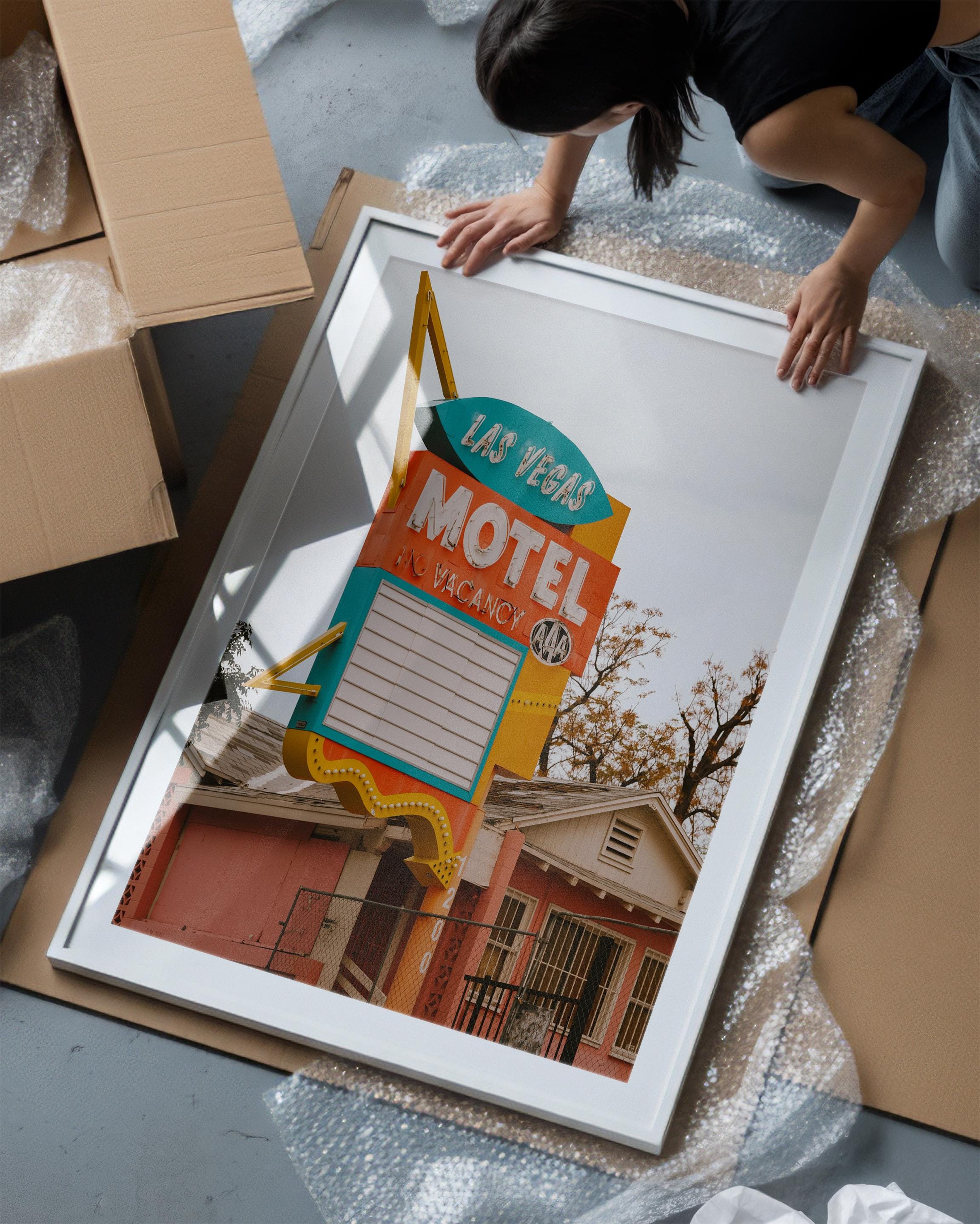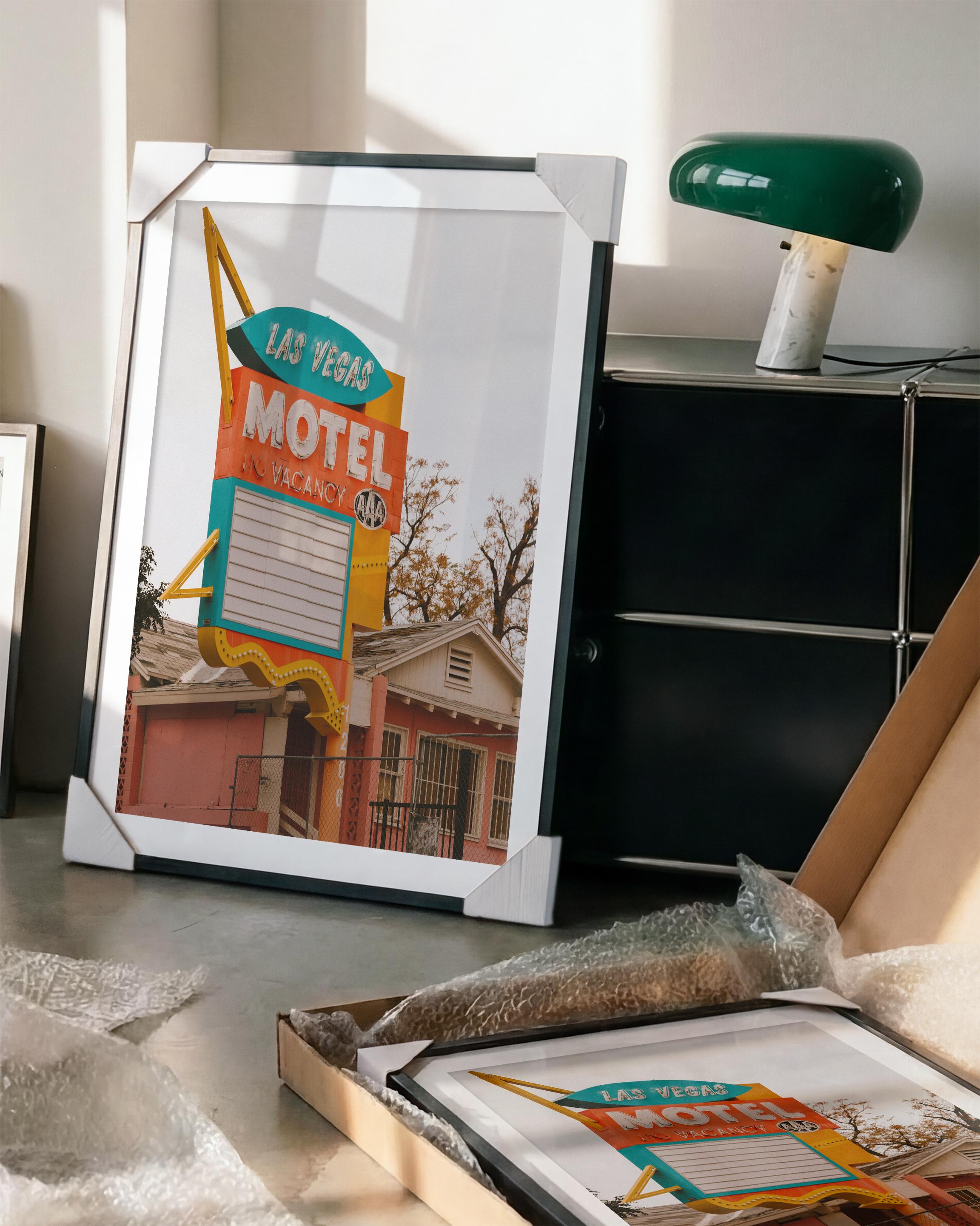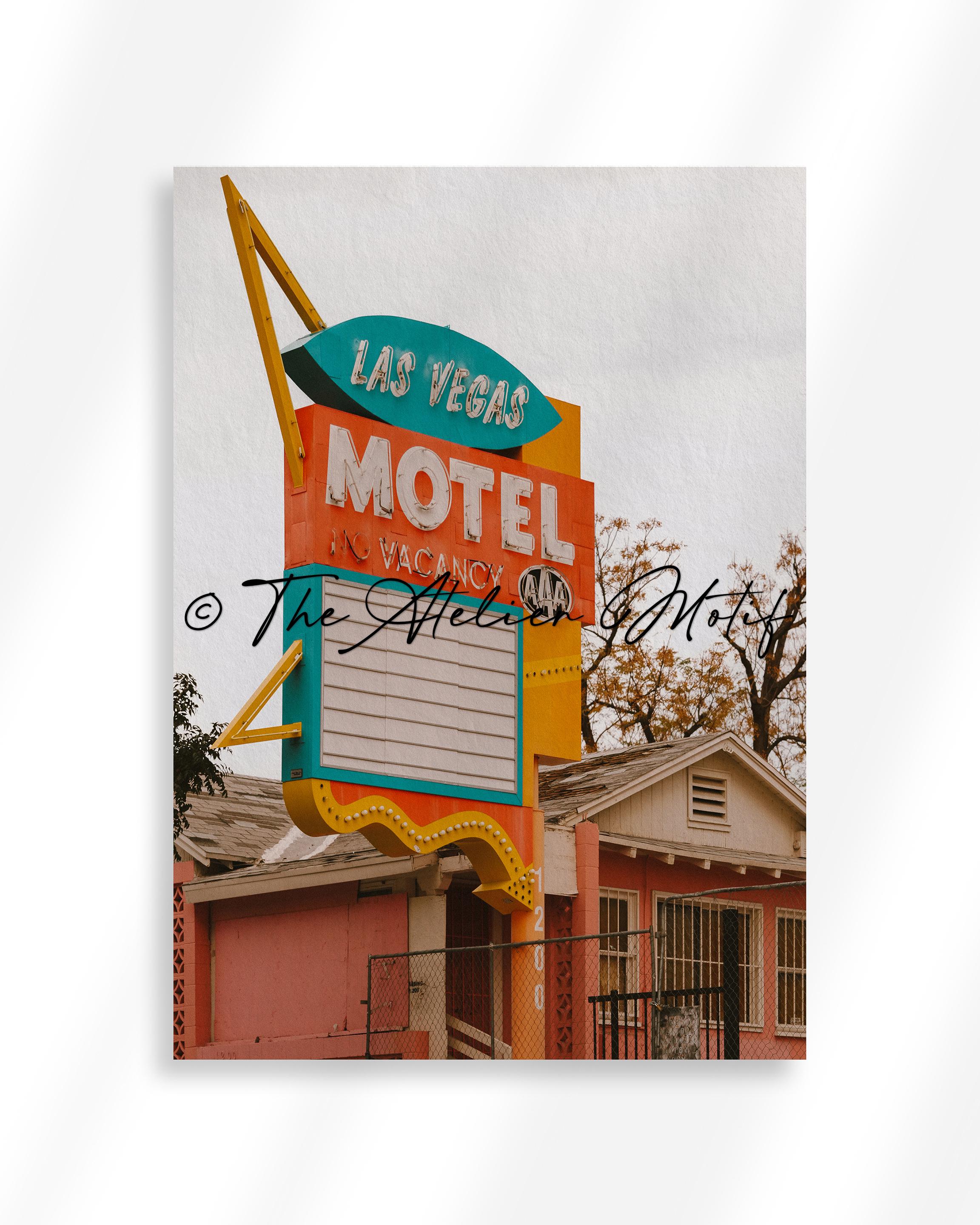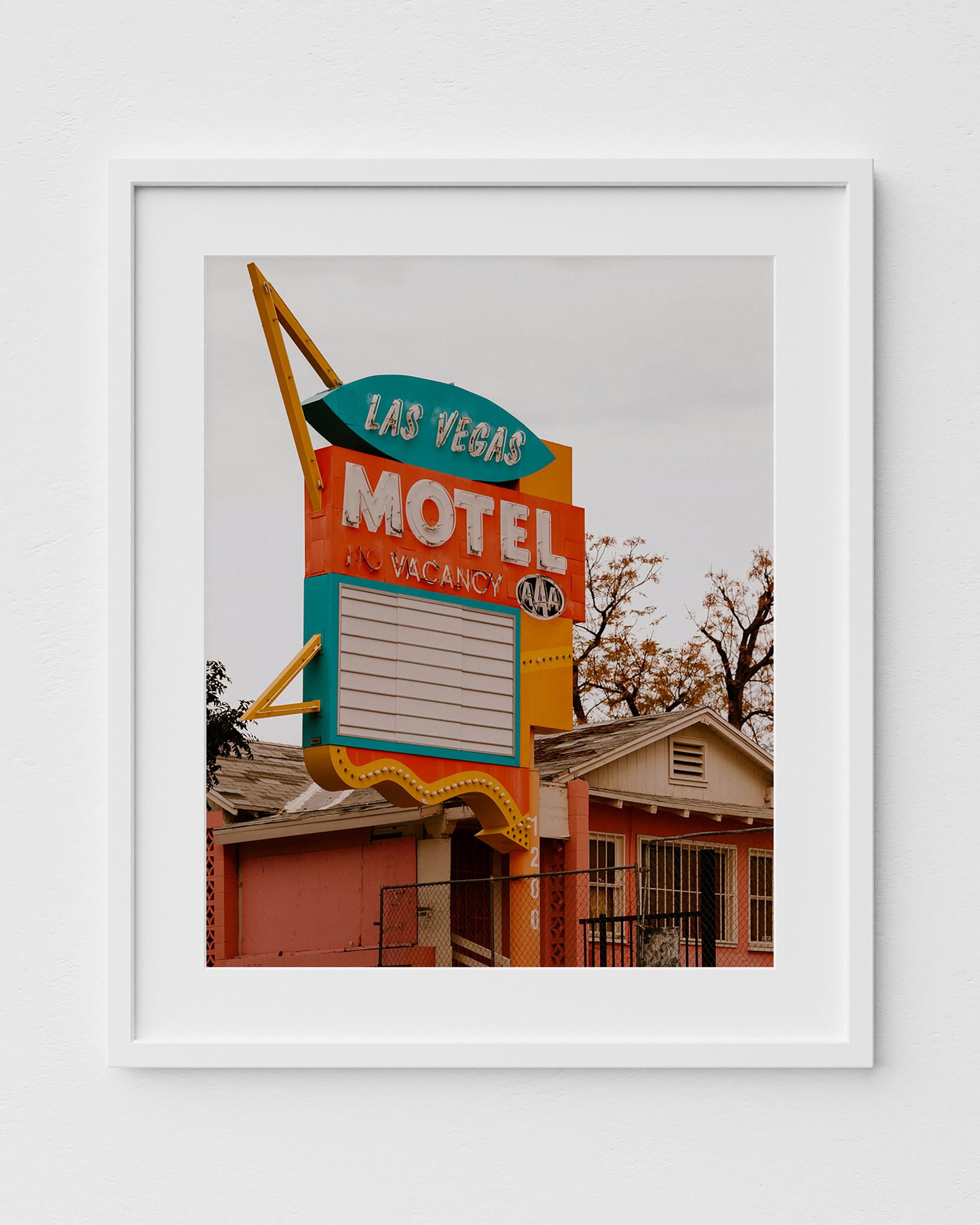 Las Vegas Motel Sign Retro Wall Art – Framed Fine Art Giclée Print